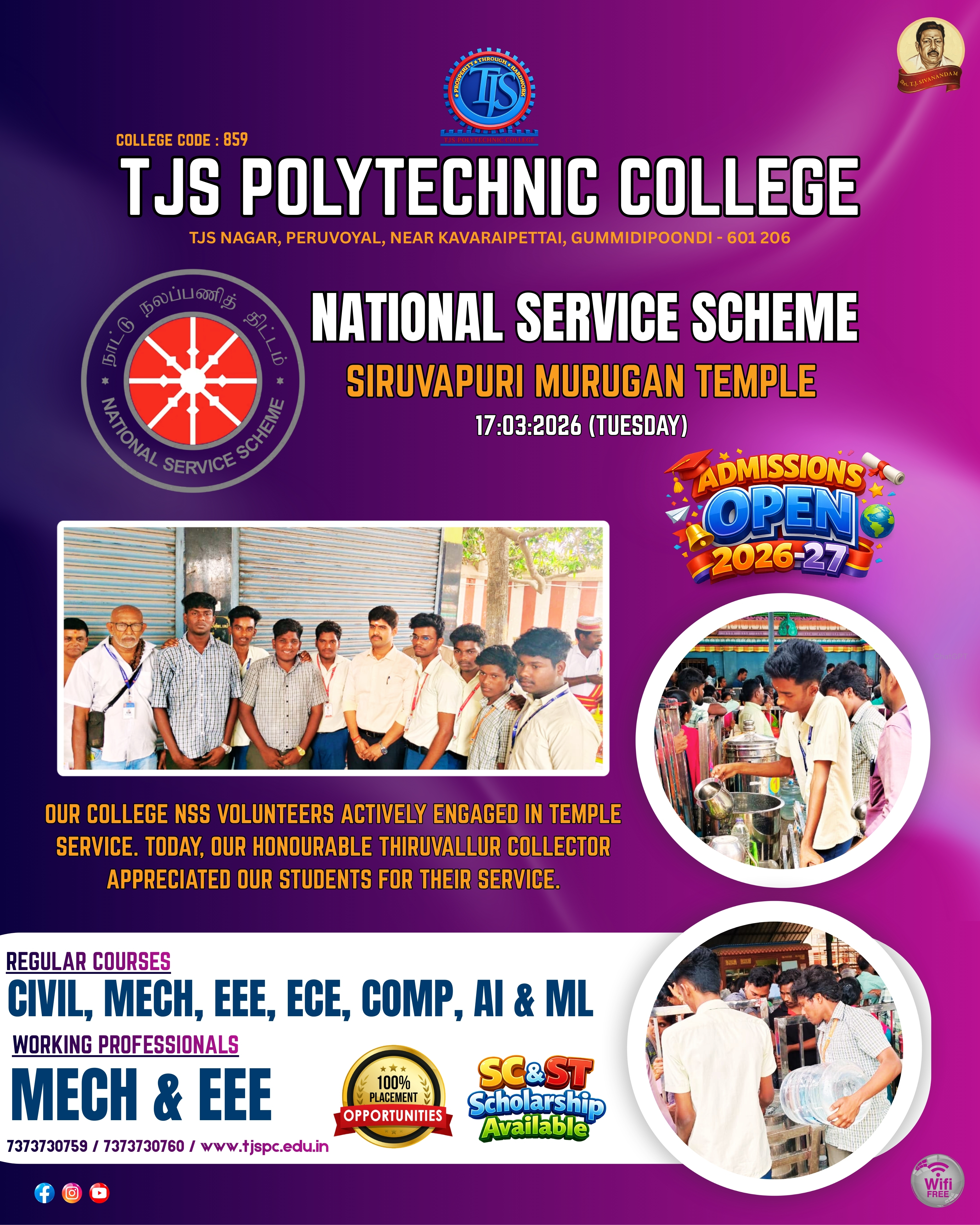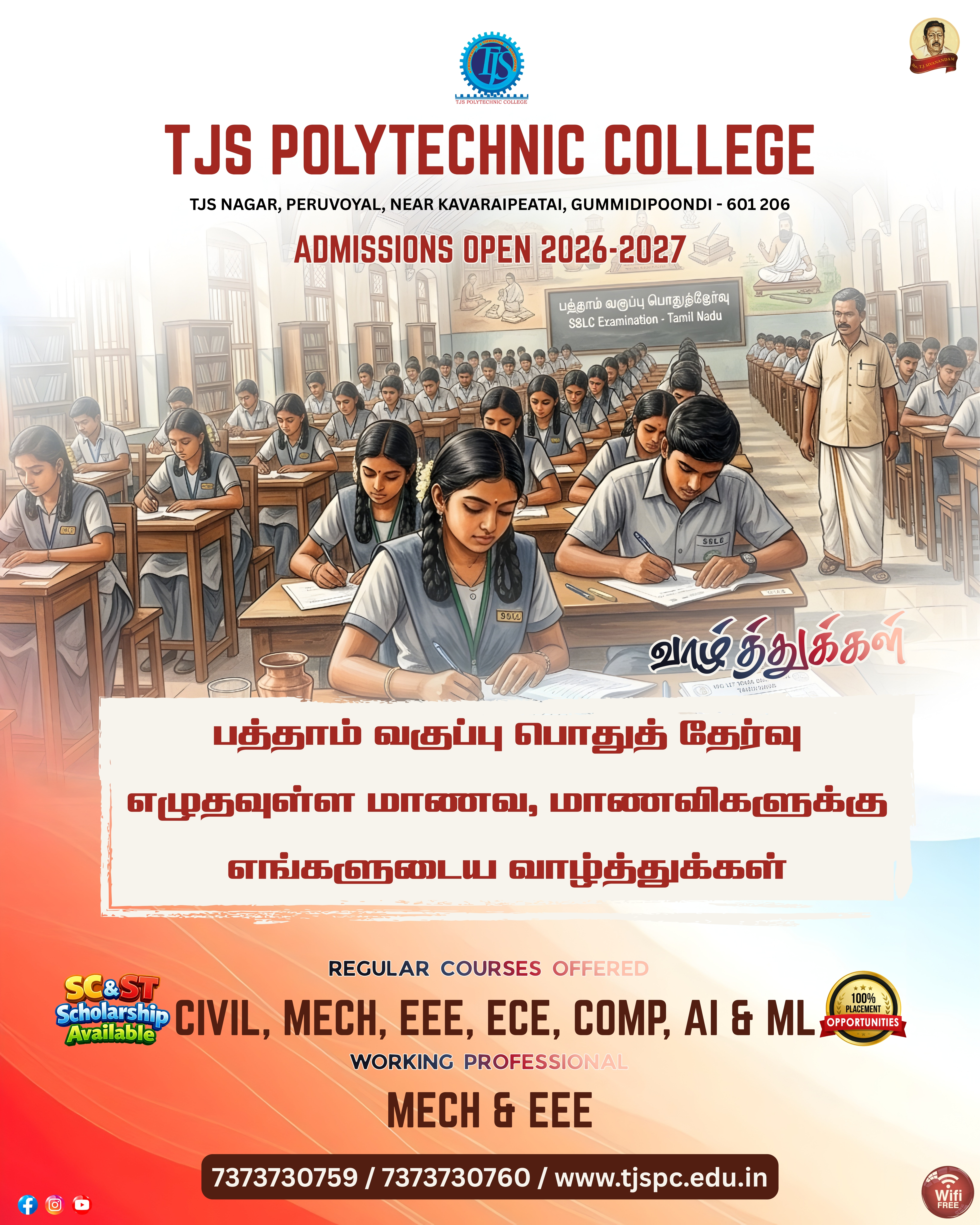 T.J.S Polytechnic College is a reputed institution in the field of technical education, dedicated to shaping skilled professionals for the modern industrial and technological world. Established in 2010, the college has been consistently contributing to technical education by offering career-oriented diploma programs that combine academic excellence with hands-on practical training.