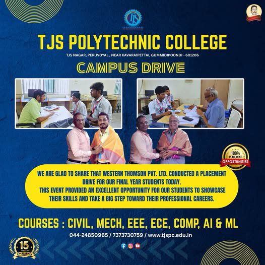 For over 15 years, TJS Polytechnic College has focused on empowering young minds with industry-relevant knowledge, professional skills, and ethical values. The institution aims to prepare students not only for employment but also for lifelong learning and responsible citizenship.